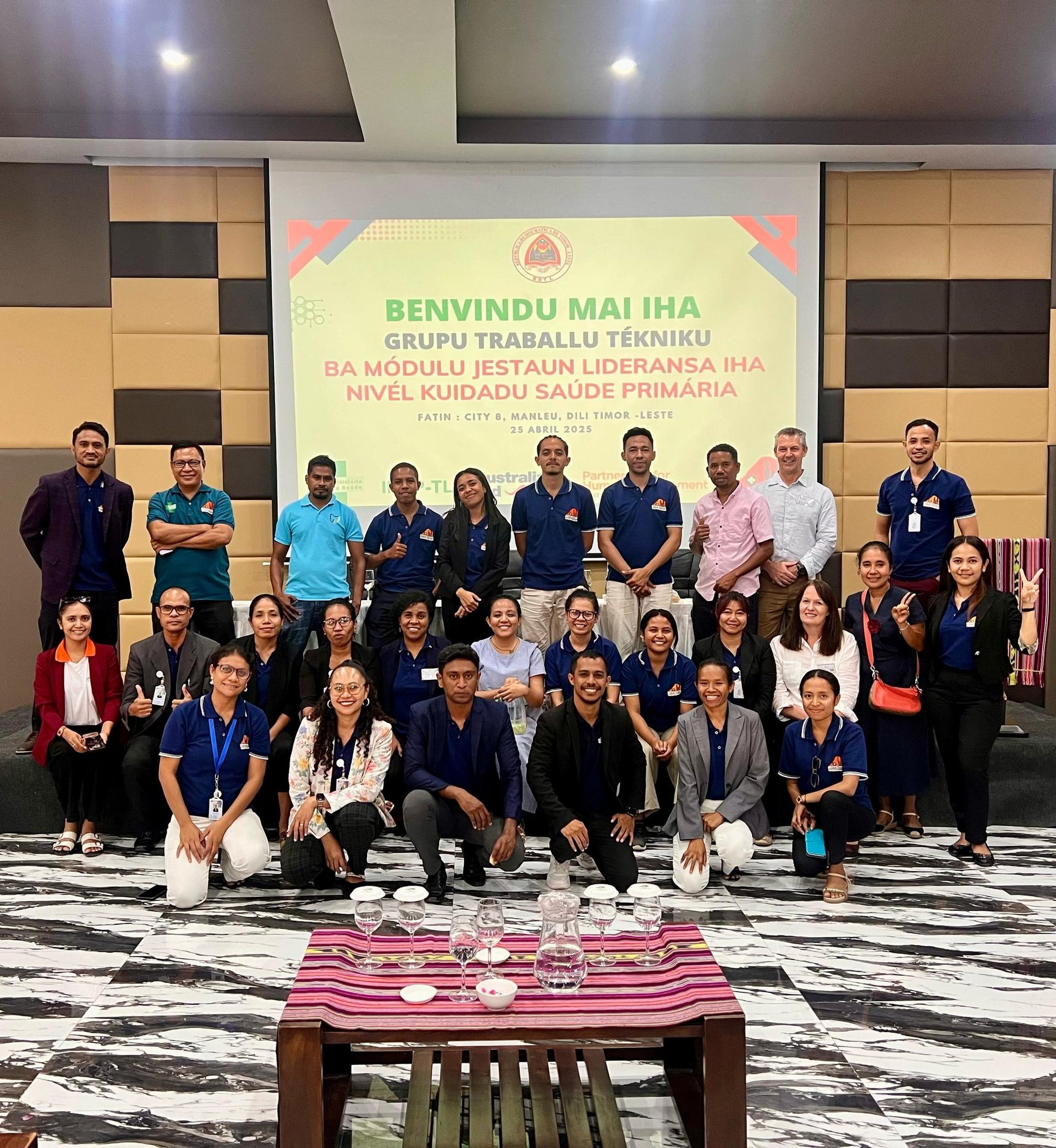 External Pilot Training at INSP-TL, Dili – Group photo with INSP-TL staff, Maluk Timor team, and primary health care workers from Community Health Centres