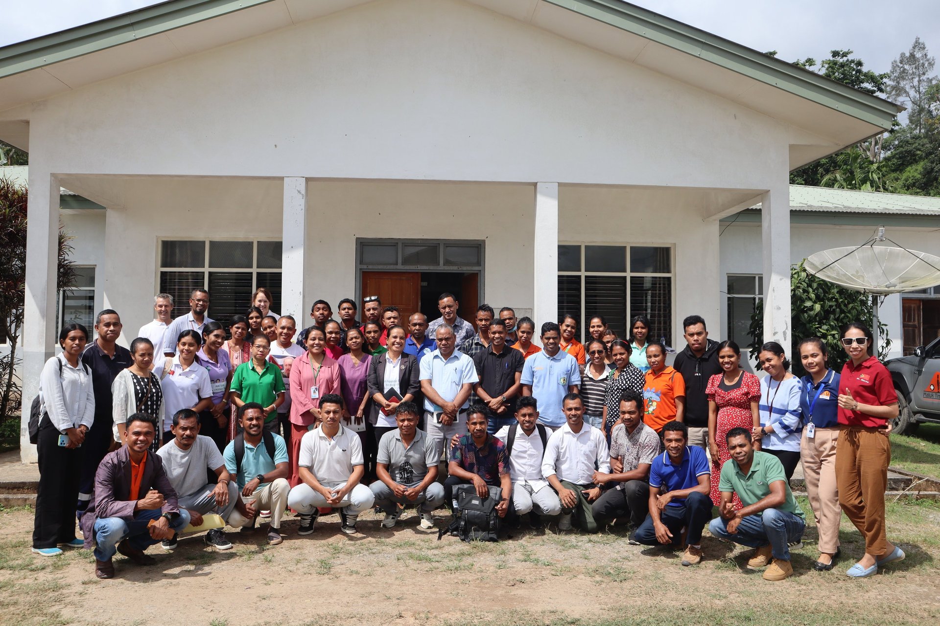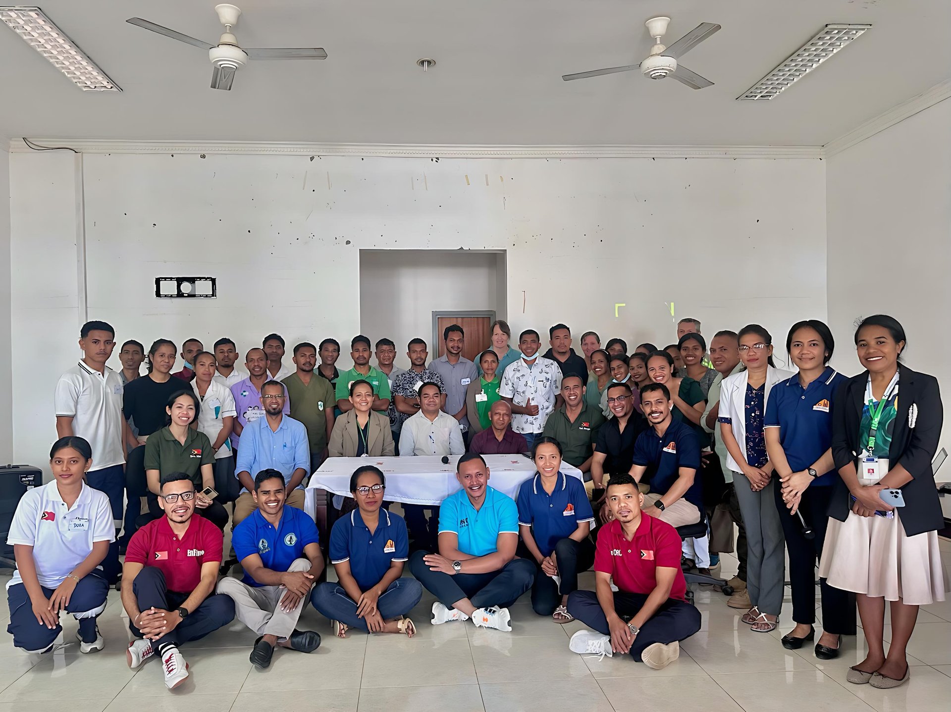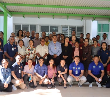 External Pilot Training at INSP-TL, Dili – Group photo with INSP-TL staff, Maluk Timor team, and primary health care workers from Community Health Centres