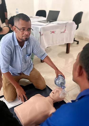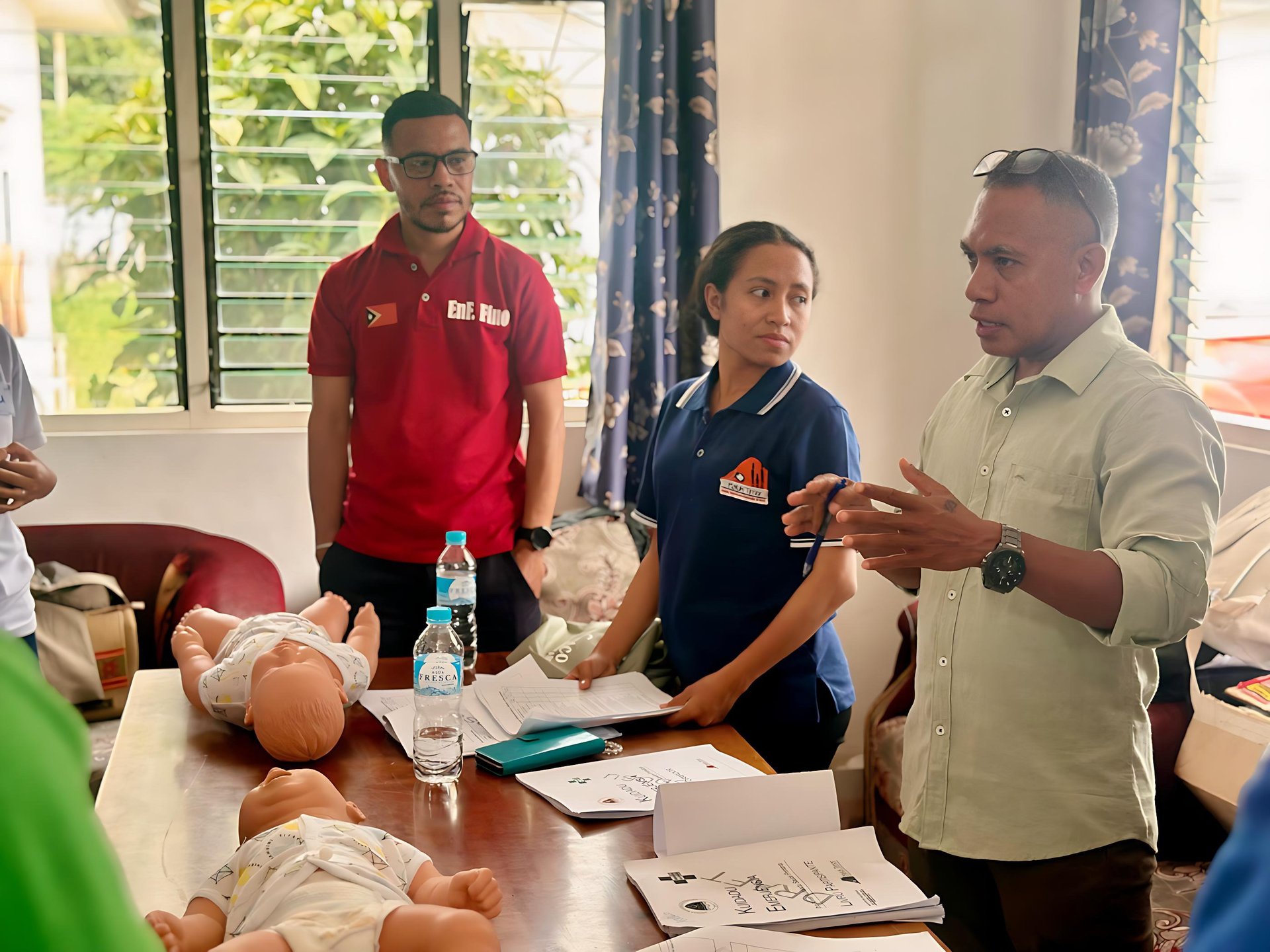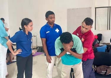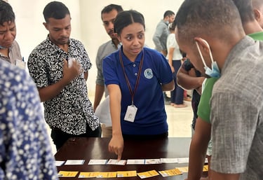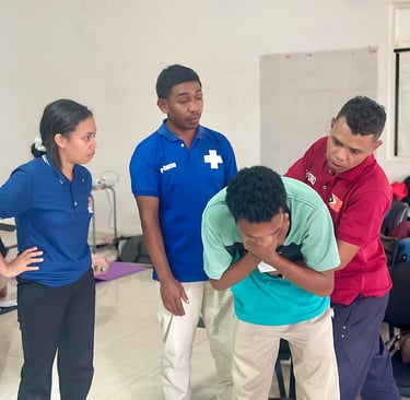 Pharmacist educator Celita guided participants through an “active recall” game to help them remember the steps of DRABCDE ,chain survival, relive of chocking during the external pilot in Ermera, held from 5–9 May 2025.