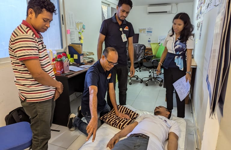 The internal pilot training for the emergency care module was conducted in Dili at Maluk Timor, involving key staff from Maluk Timor and facilitators from the Health Professions Development team. Participants provided valuable feedback on the training’s accessibility, language, and usability to enhance the quality and effectiveness of the program.